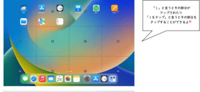 設定は[設定>アクセシビリティ>音声コントロール]をオンにすることで利用できます。初期段階では、生徒の話し方や抑揚に合わせて認識しやすくするための練習や、基本操作の反復練習も行いました。