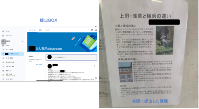 生徒にとって、「他の生徒と同じように課題を提出できた」「先生から直接フィードバックをもらえた」という体験は、確かな達成感と自己肯定感につながりました。実際に提出されたレポートには、自ら調べた内容を自分の言葉で表現し、写真を効果的に活用するなど、意欲と工夫が見られました。